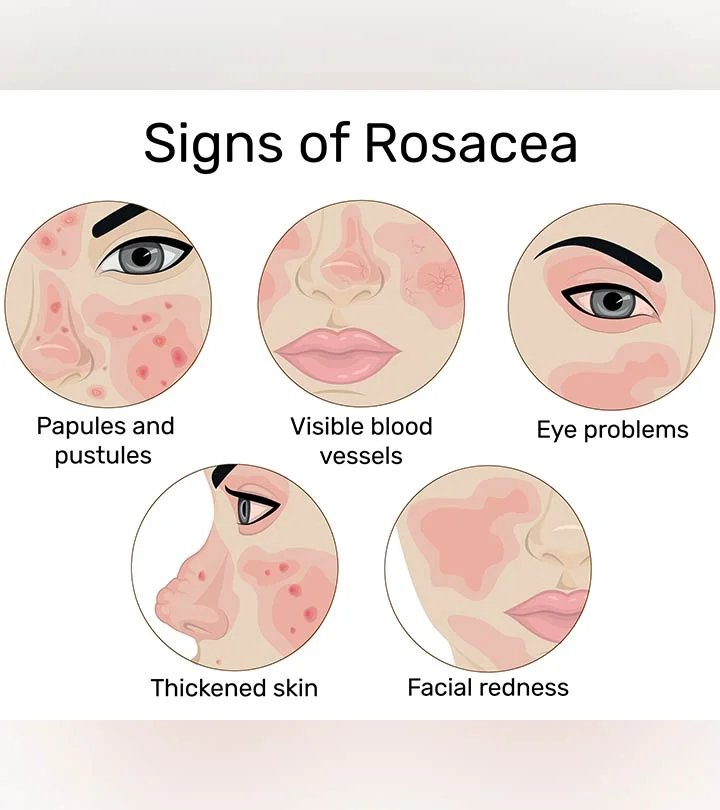 - المشاكل في الأوعية الدموية للوجه، وتتفاقم مع التعرض لأشعة الشمس مسببة اتساعها وظهورها.
